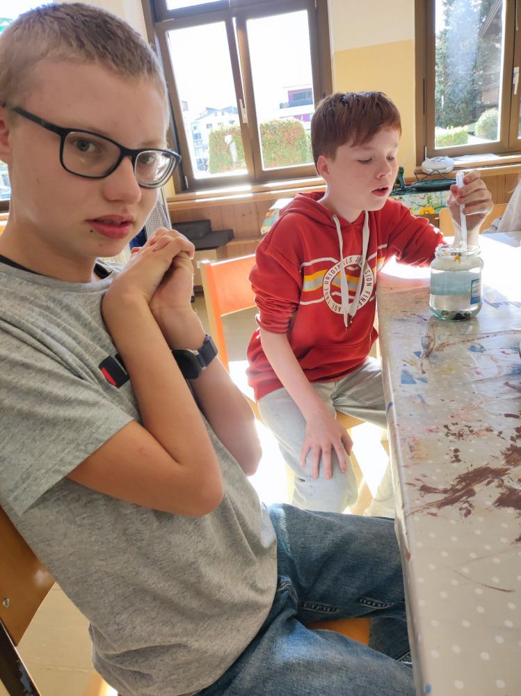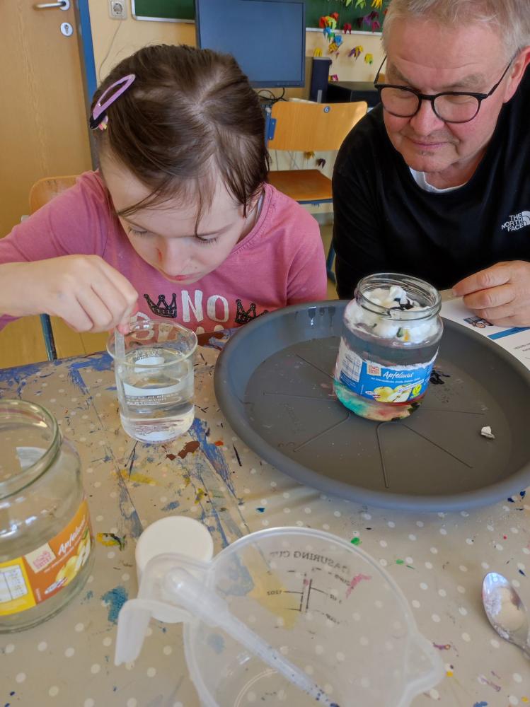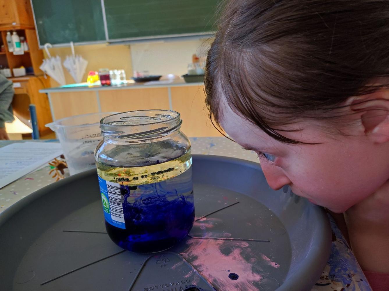 Experimente von Jürgen Landerer 16. Oktober 2025 Im Nachmittagsunterricht gab es gestern 3 spannende Experimente. 1. Bunte Kreideschäume, 2. Die Reise des Tintentropfens, 3. Buntes Regenwetter im Glas. Es war sehr interessant zu sehen, was im Glas so vor sich geht.