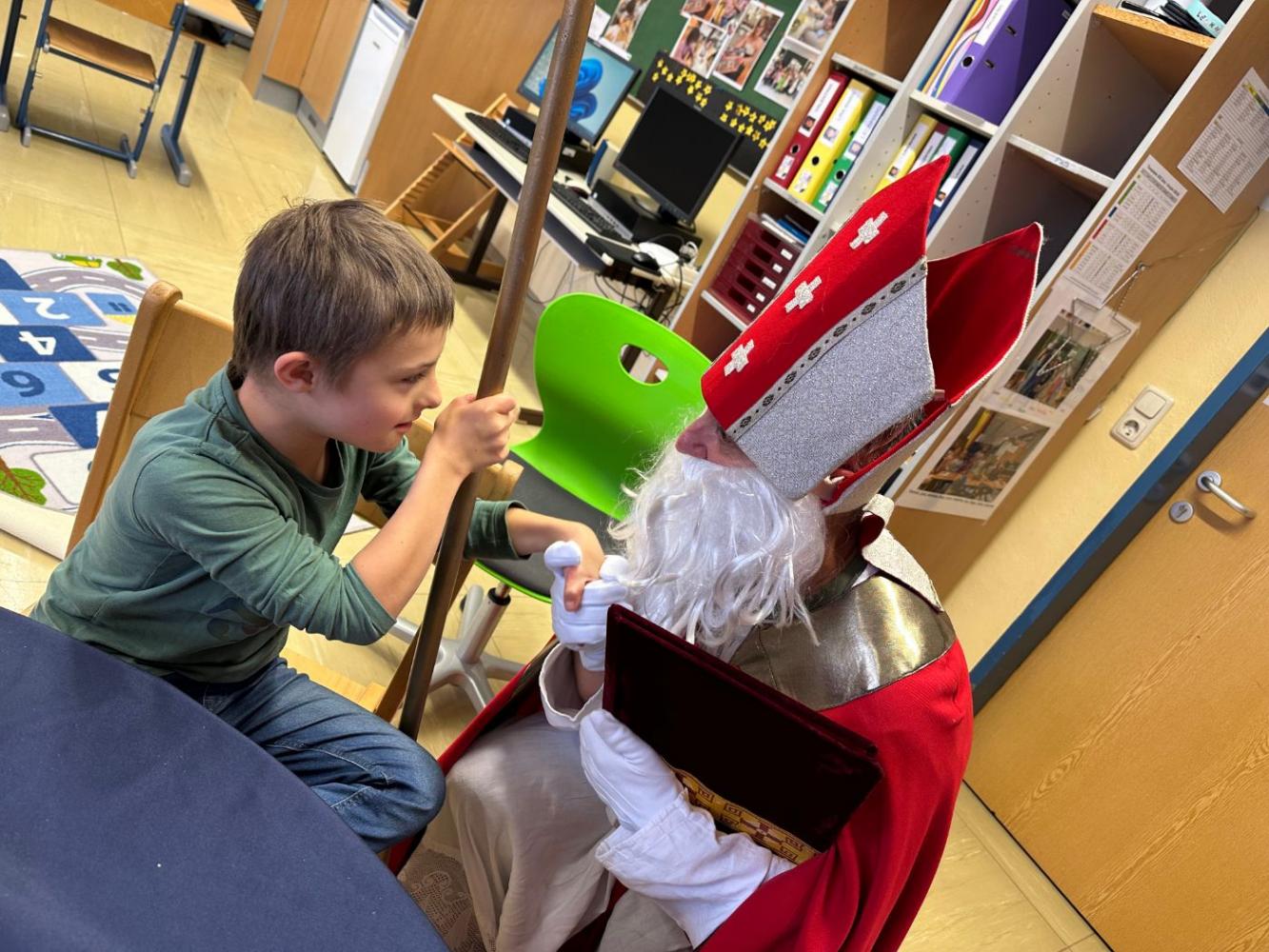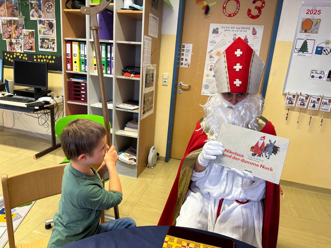 Sei gegrüßt, lieber Nikolaus von Jürgen Landerer 13. Dezember 2025 Weil wir ja alle brav sind und fleißig lernen, kommt auch der Nikolaus zu uns an die Schule. Er hat uns eine tolle Geschichte aus einem Buch vorgelesen und uns leckere Sachen mitgebracht. Vielen Dank, lieber Nikolaus, für deinen Besuch!