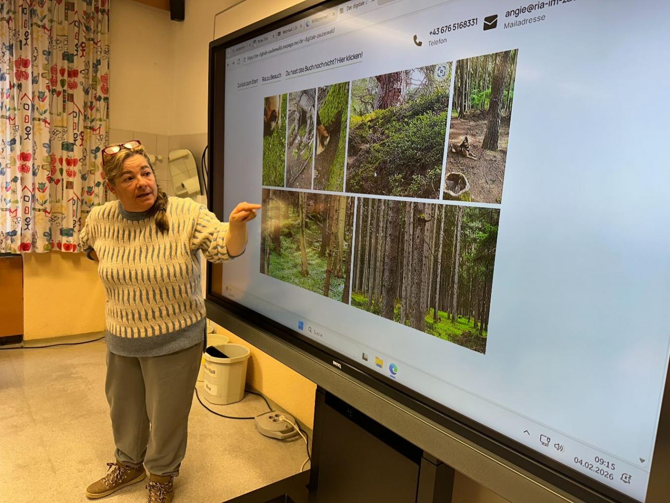 TKS - Im Zauberwald von Jürgen Landerer 04. Februar 2026 Heute gab es eine interessante Buchpräsentation an unserer Schule. Angela präsentierte uns ihr Buch "Geschichten aus dem Zauberwald". Gespannt lauschten wir ihren Erzählungen und konnten tolle Bilder und Filme bestaunen. Danke, für die feine Stunde!